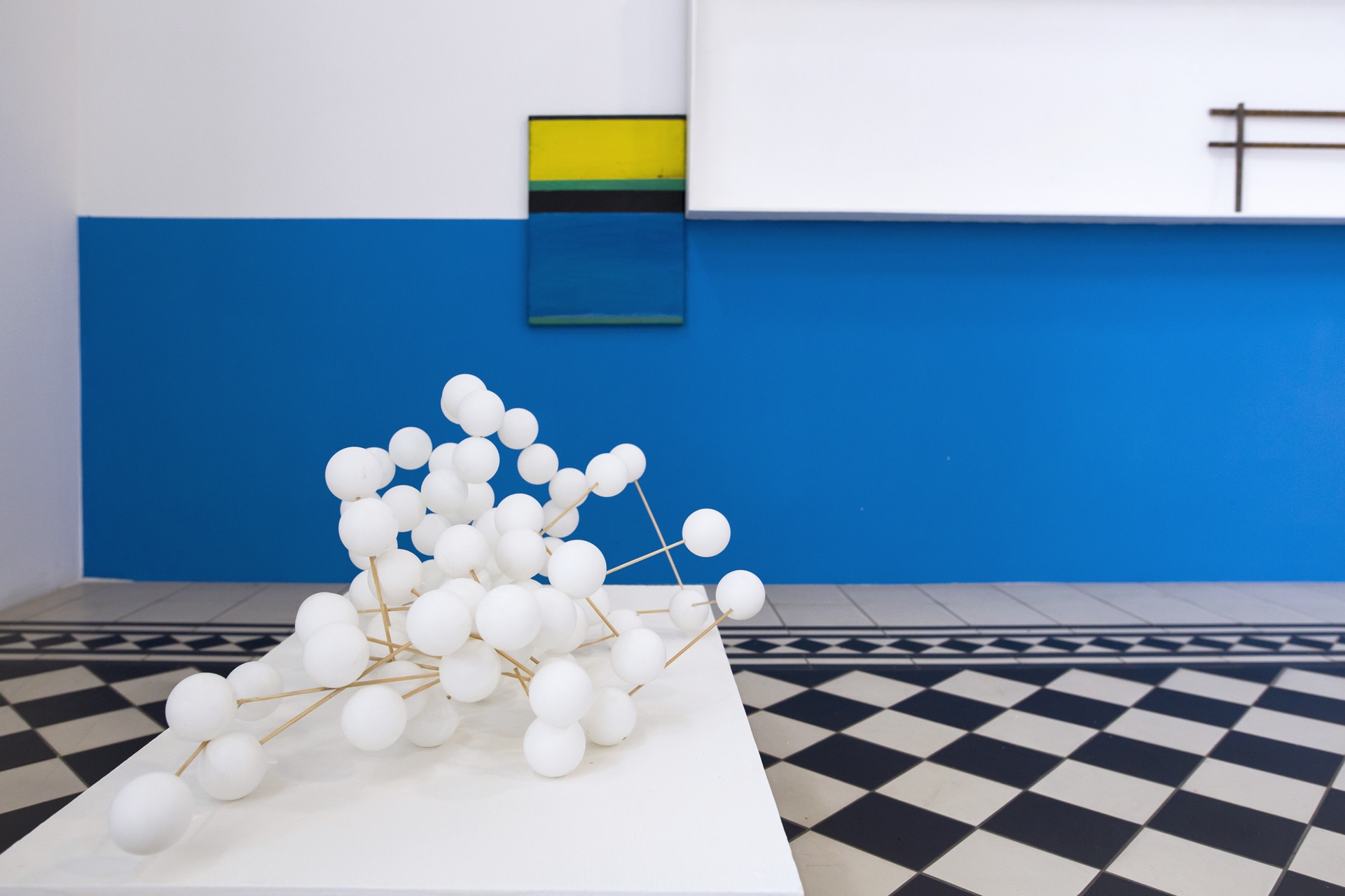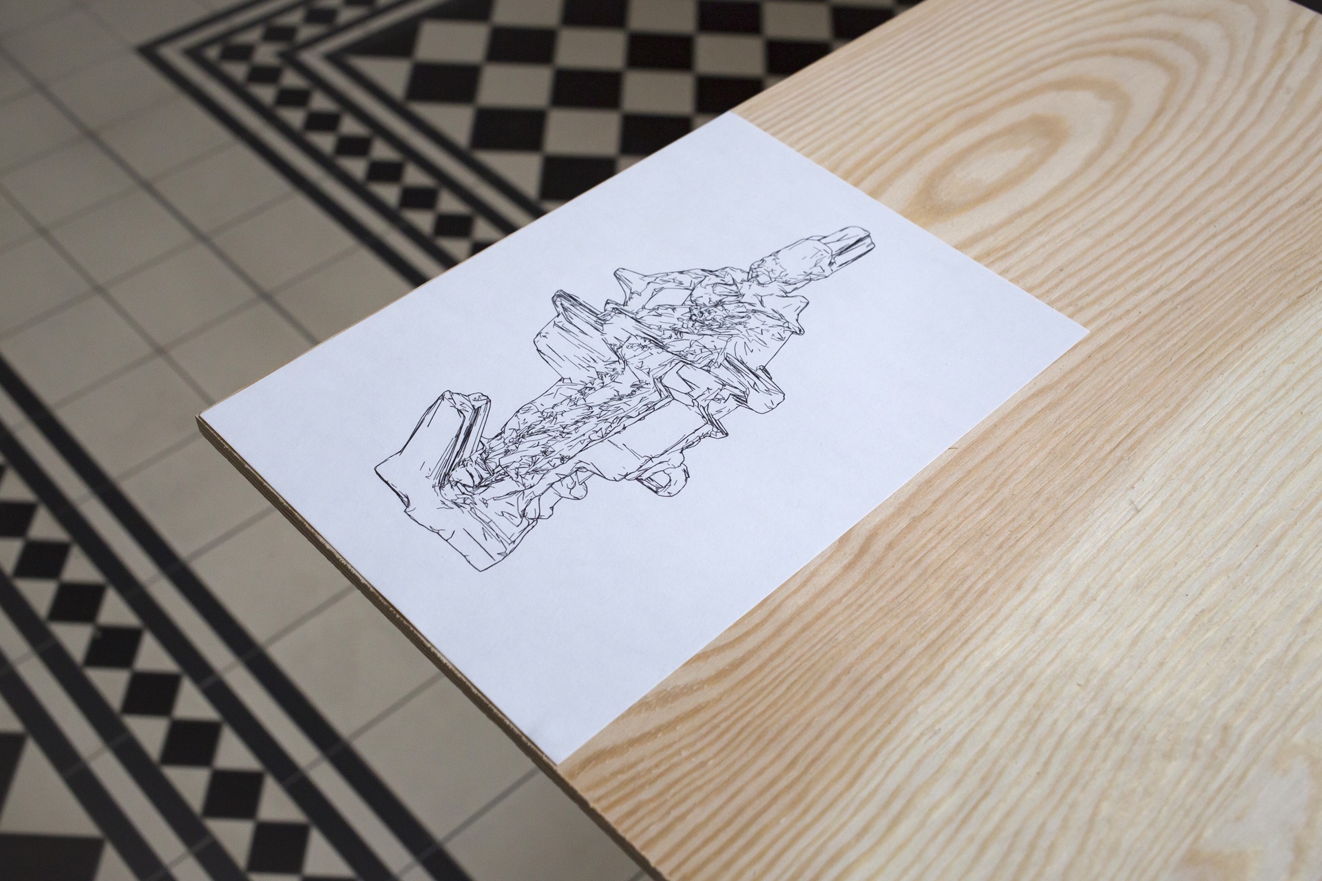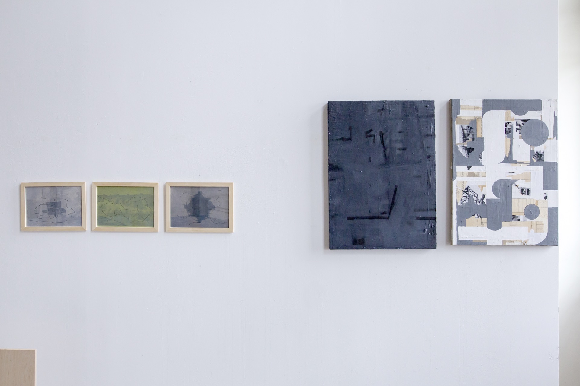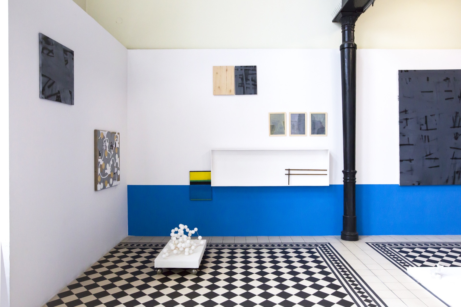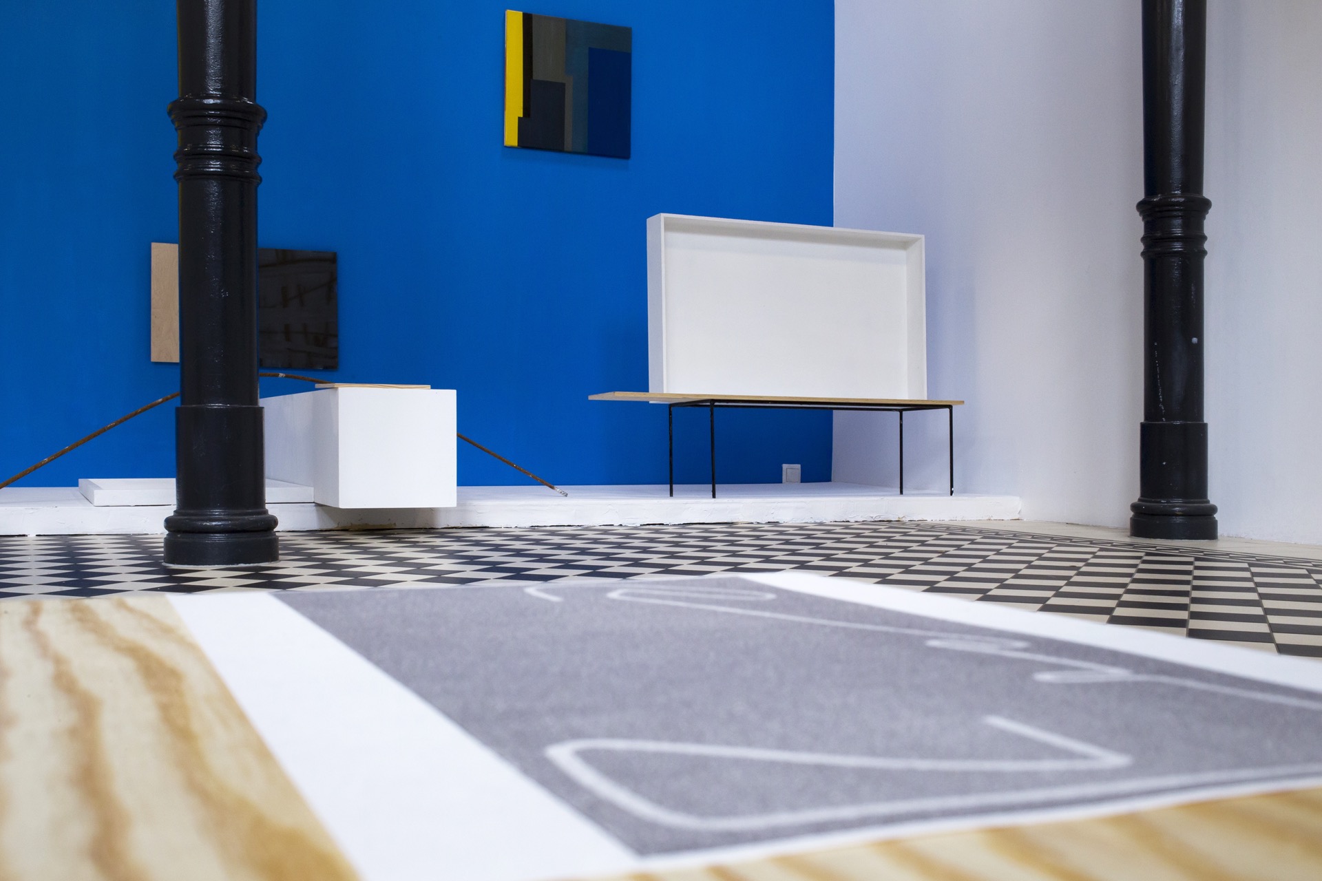 Architectural references are also revealed in the series of paintings "Constructions", especially their color scheme (a range of grays and blacks), matter (imitating unplastered walls), interpenetrating lines, infinitely multiplying their repetitions, recall the climate of Brutalist realizations. Michal Sroka is also preoccupied with the issue of mock-ups, widely discussed in the architectural world, which, to the regret of some circles, have generated their own truth , gaining the status of autonomous works of art. As the artist aptly notes, mock-ups often play with representation and objectivity, and thus resemble certain programs of modernist painting and sculpture (the biggest boom for mock-ups was precisely the 1950s). Michał Sroka's artistic peregrinations thus serve to uncover and explore further "constructopias" awaiting their definition, manifested at the intersection of many disciplines: design, painting, sculpture and architecture, much like his own creative practice.