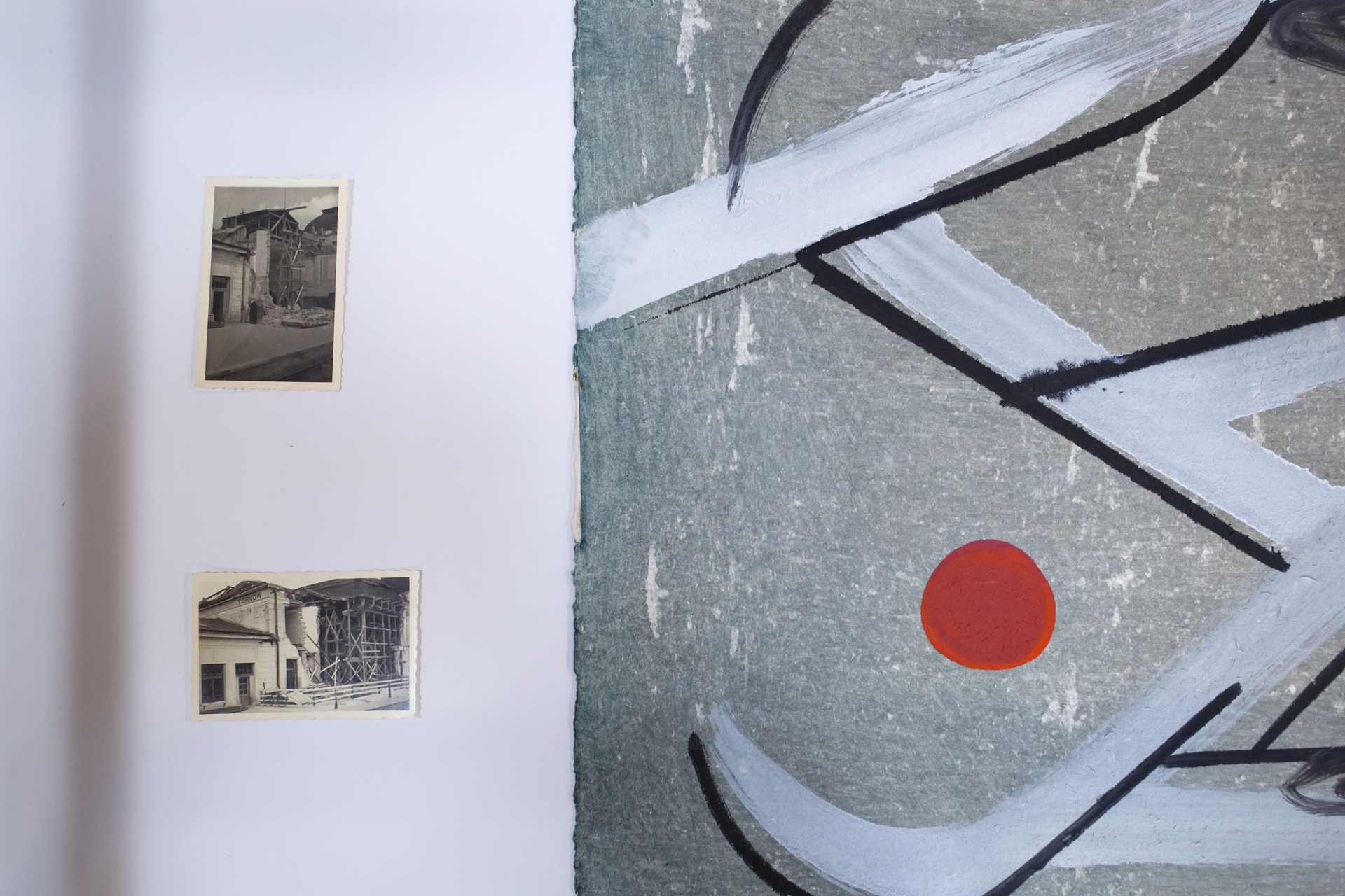 Ugly, mediocre, suggestive or sexy: architecture is a metaphor because it operates with abstract means, which some people fill with their own content, while others see as a sum of contexts and a collage of unconscious associations . The cited quote seems to well reflect Michal Sroka's thinking about this particular discipline, as he treats architecture as a metaphor. For he is interested in its "afterimages" rather than iconic realizations, and if he already refers in his creative practice to the "classics" of modern construction, the ideological aspect, the representation of the meanings they carry, is more important to him than their design process. Thus, he freely juxtaposes photographs depicting events that only seemingly have nothing to do with each other: the demolition of the Pruitt-Igoe housing estate in Saint Louis, USA, called the symbolic end of modernist architecture, and the body of the Tarnów train station, damaged as a result of a terrorist attack on the eve of the outbreak of World War II. Both photographs emphatically show a farewell to hopes and illusions, in the case of the American housing estate: the naive faith of the pioneers of modernity in the social efficacy of architecture (overcoming racial and property divisions among the population living in Pruitt-Igoe), while in Tarnow the realization of the reality of the coming war catastrophe, which is also the end of an era. The neo-baroque-modernist architecture of the Tarnów train station, with its eclectic decor at the same time, corresponds perfectly with Michal Sroka's working method. This is because the artist works in the spirit of the "palimpsest," patiently uncovering successive "layers" of art history in his works, but subjecting them to critical revision. No wonder he is so keen on the collage technique, working, for example, with photographs of industrial architecture by Bernd and Hilla Becher, stressing that he is primarily interested in analyzing the typology of these buildings, with a particular focus on their metabolic nature: the successive layers superimposed on the works create a kind of utopian urbanism, with freely winding streets, fractally growing layouts.